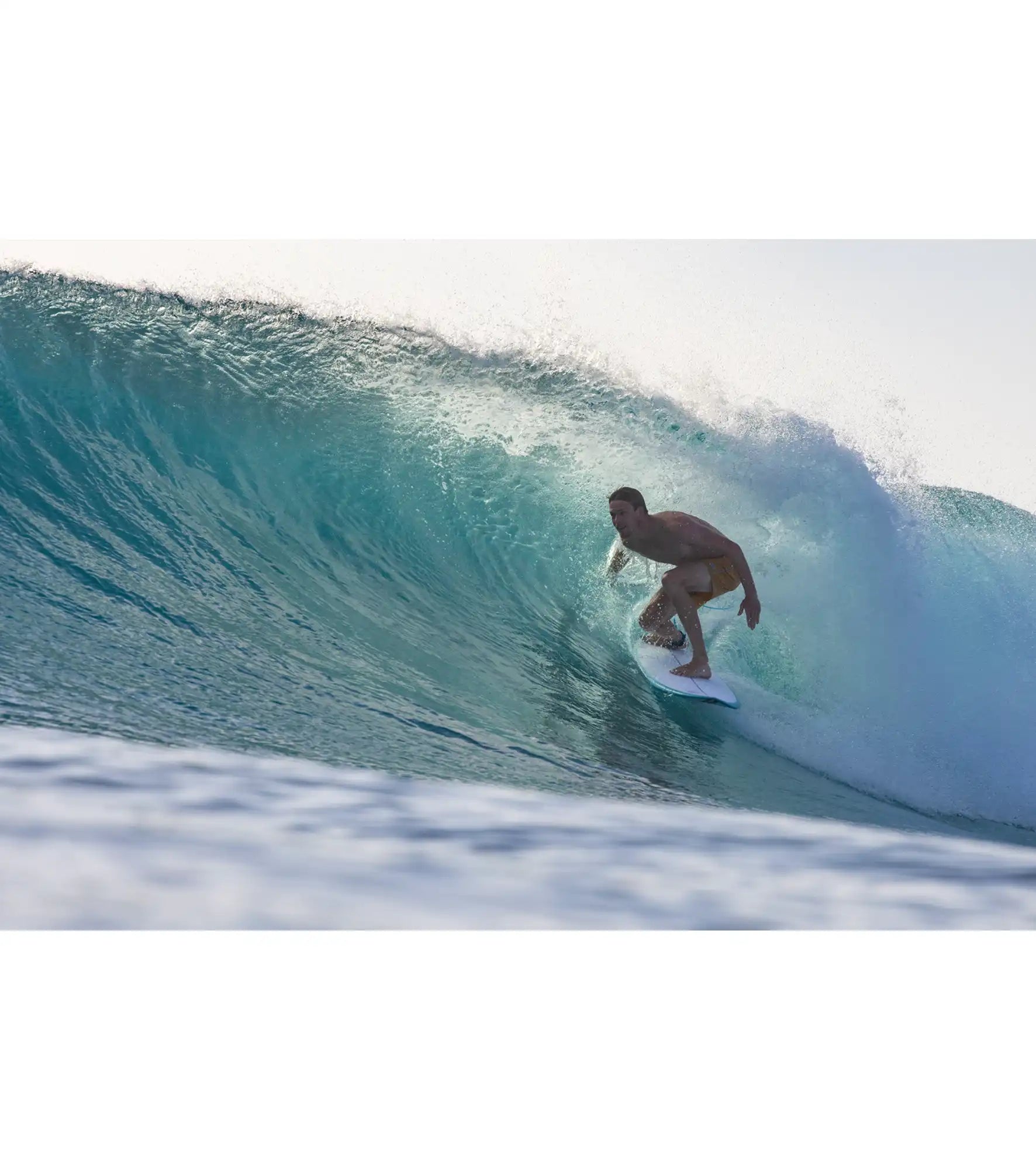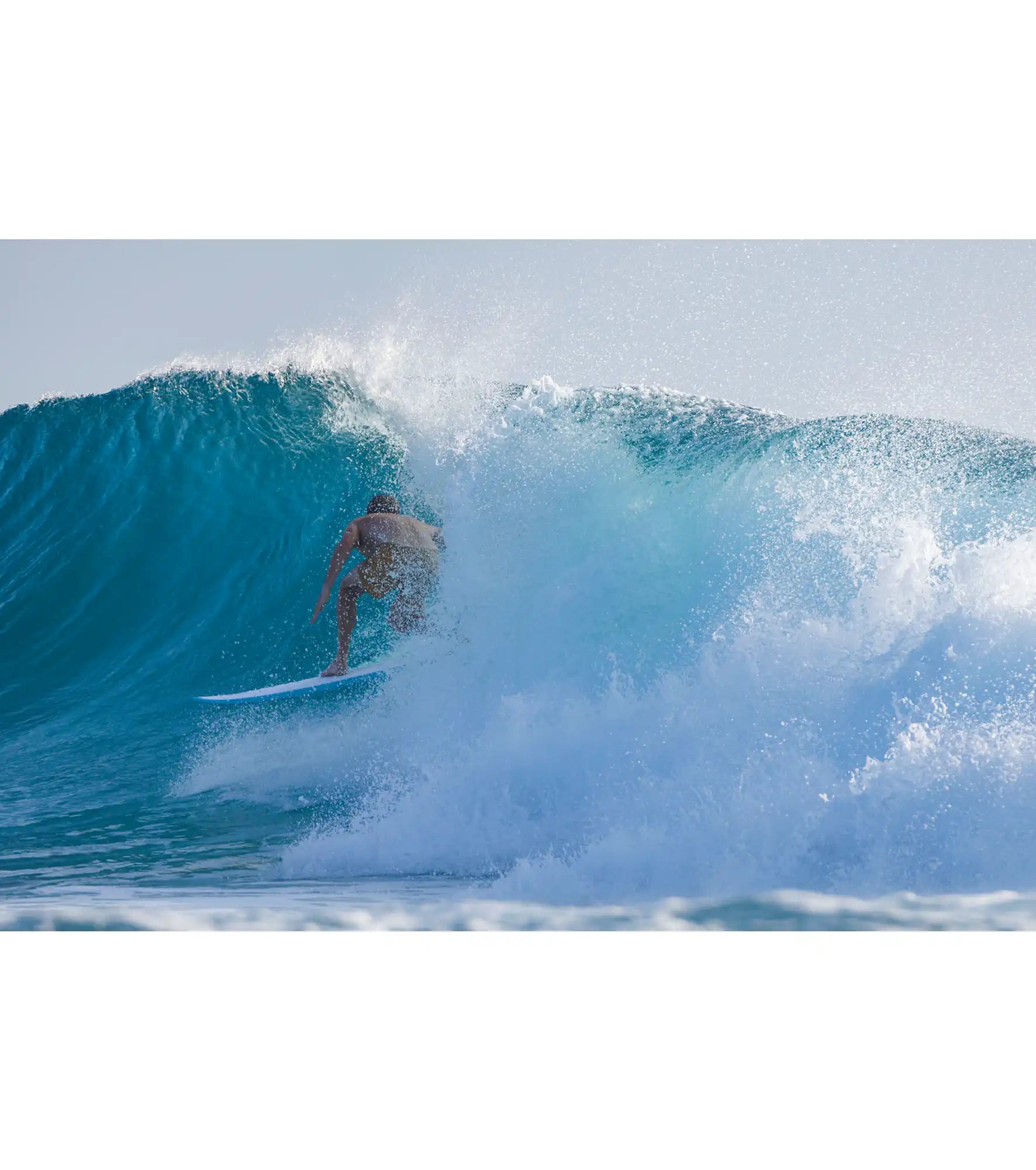 We can add extra layers of fiber while keeping the overall weight down – our shortboards have 18oz of fiber on the deck and 10oz on the base – approximately double of the fiber found on most boards of the same weight.