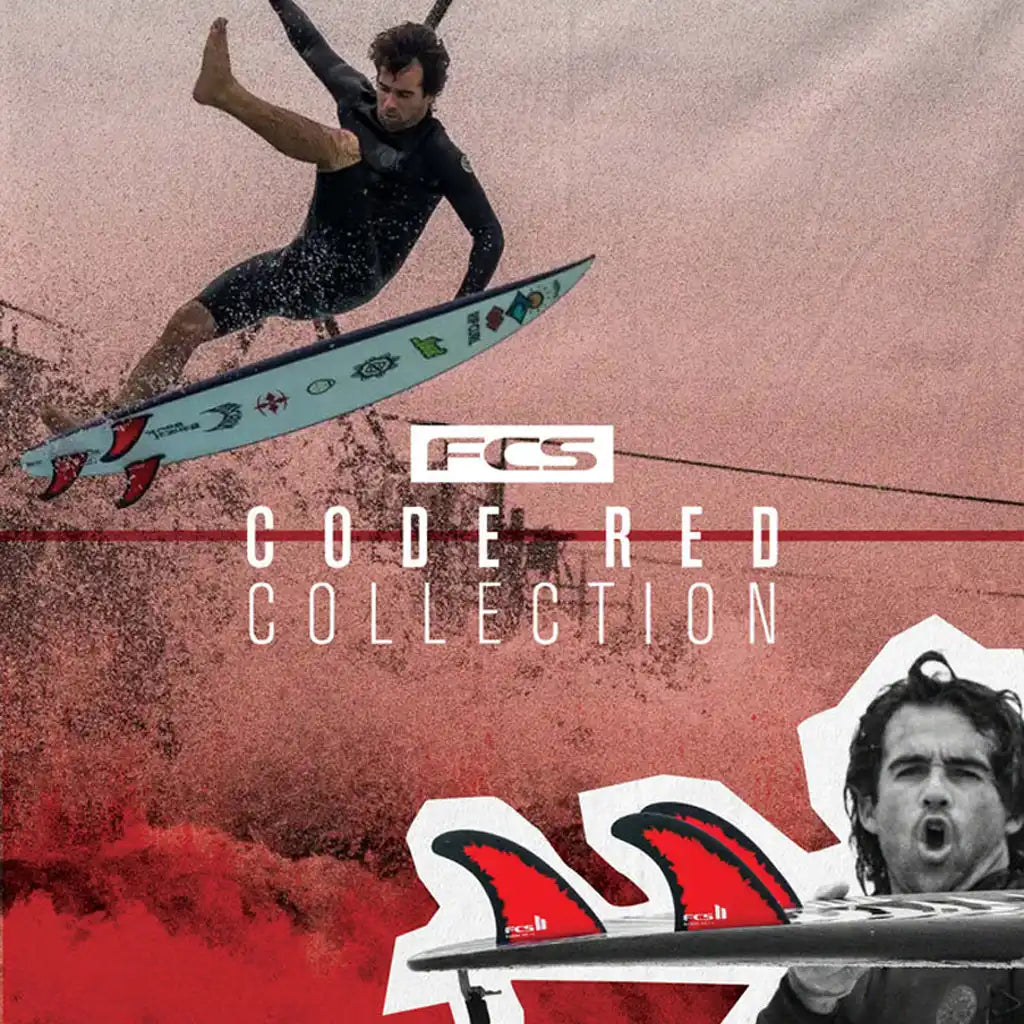 This limited-edition range brings together our essential go-to gear: the all-new Code Red fin, tee, cap, leash, deck grip, and stretch cover – all unified in a bold, fire-red finish.
