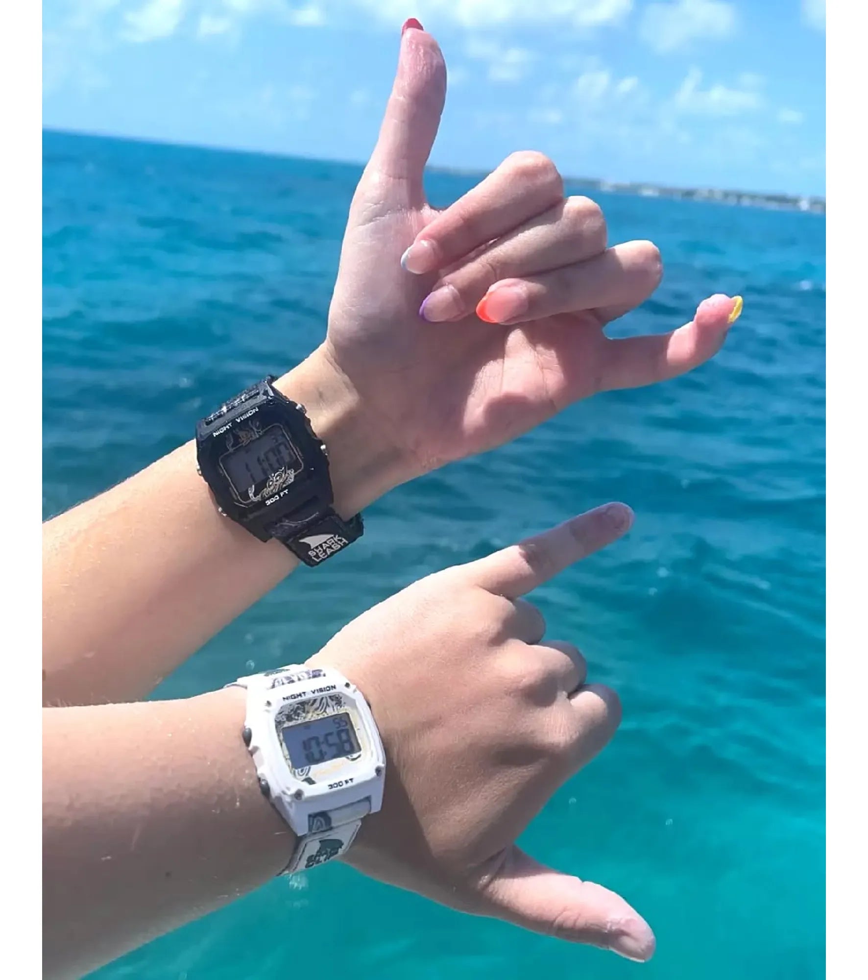 Many models in the Freestyle line have Hydro-Pushers. This means that you can push the buttons under water without worry of getting water inside your watch. Refer to the Details section for your watch to see if it has Hydro-Pushers.